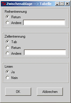 in eine CALS-Tabelle umwandelt und diese wieder in die Zwischenablage