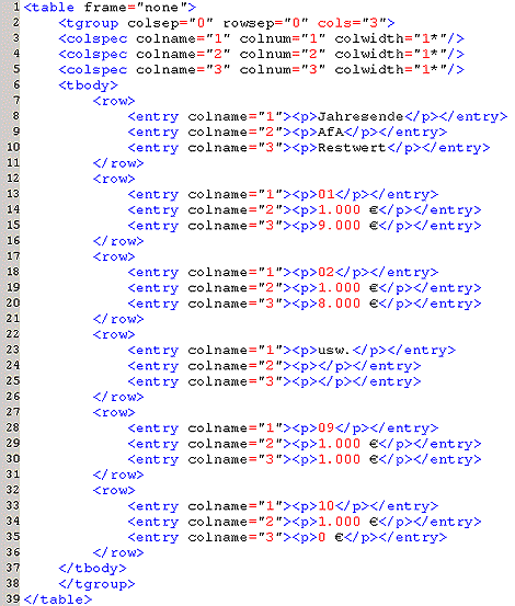 Werken werden Tabelllen häufig nach dem CALS-Standard verwendet.